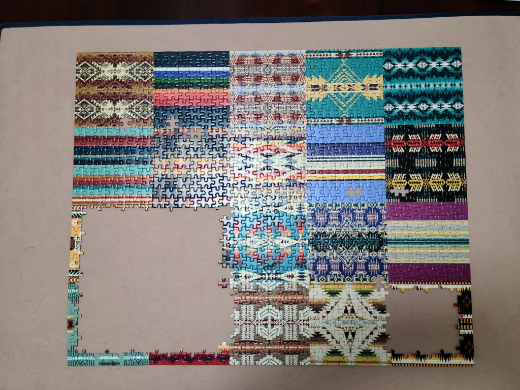 The Art of Patchwork Puzzle is a 1000-piece puzzle from Chronicle Books that features wool patterns from the Pendleton company.