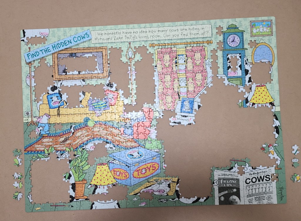 Hidden Cows is a Sandra Boynton puzzle from Workman Puzzles that was absolutely delightful. It is 1000 pieces.