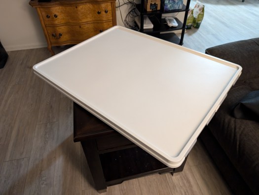 I got the Playboda puzzle board that I have been seeing all over TikTok and so far I love it! It is made for a 1500-piece puzzle so it will hold the larger 1000-piece puzzles I sometimes run across. It rotates, which is awesome, and it fits on the little table I have in the living room so now I can puzzle in front of the TV.
