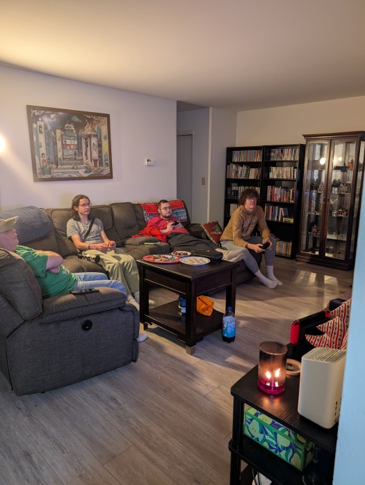 Then on Sunday, my friend Renee, her boyfriend Chris, and her two sons Evan and Hans came over to celebrate Christmas with Michael and me. We had a really nice time. We ordered Chinese food, and I had made a couple of treats that I remembered from my childhood – sour cream cookies and a Heath-inspired dessert bar. We also exchanged gifts, and Renee gave me a puzzle that she picked up at a farmers’ market. ☺️
