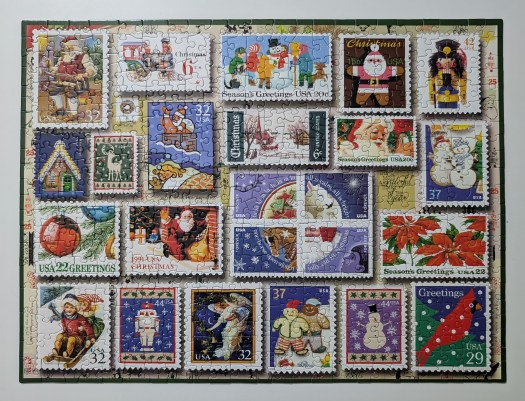 Holiday Stamps is a 550-piece puzzle from White Mountain, and the artist is Lois B. Sutton. I have had this on my shelf for almost a year and was so excited to finally get to do it! I just love seeing so many different holiday stamps that have been issued over the years. Each one is special in its own way. I did this one on December 23rd.