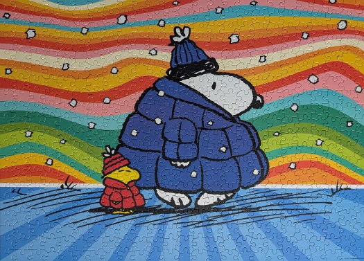 Snoopy’s Puffer Coat is a 500-piece puzzle from Ceaco. This was a Christmas present from my son Michael, and I just couldn’t resist doing it right away. It is just so stinkin’ cute!
