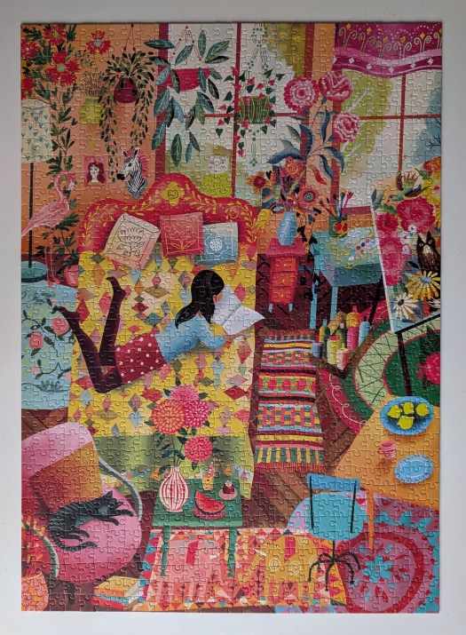 Cozy Living is a 1000-piece puzzle from Elena Essex, and the artist is Uta Krogmann. I absolutely loved this puzzle experience – I can’t say enough good things about it!