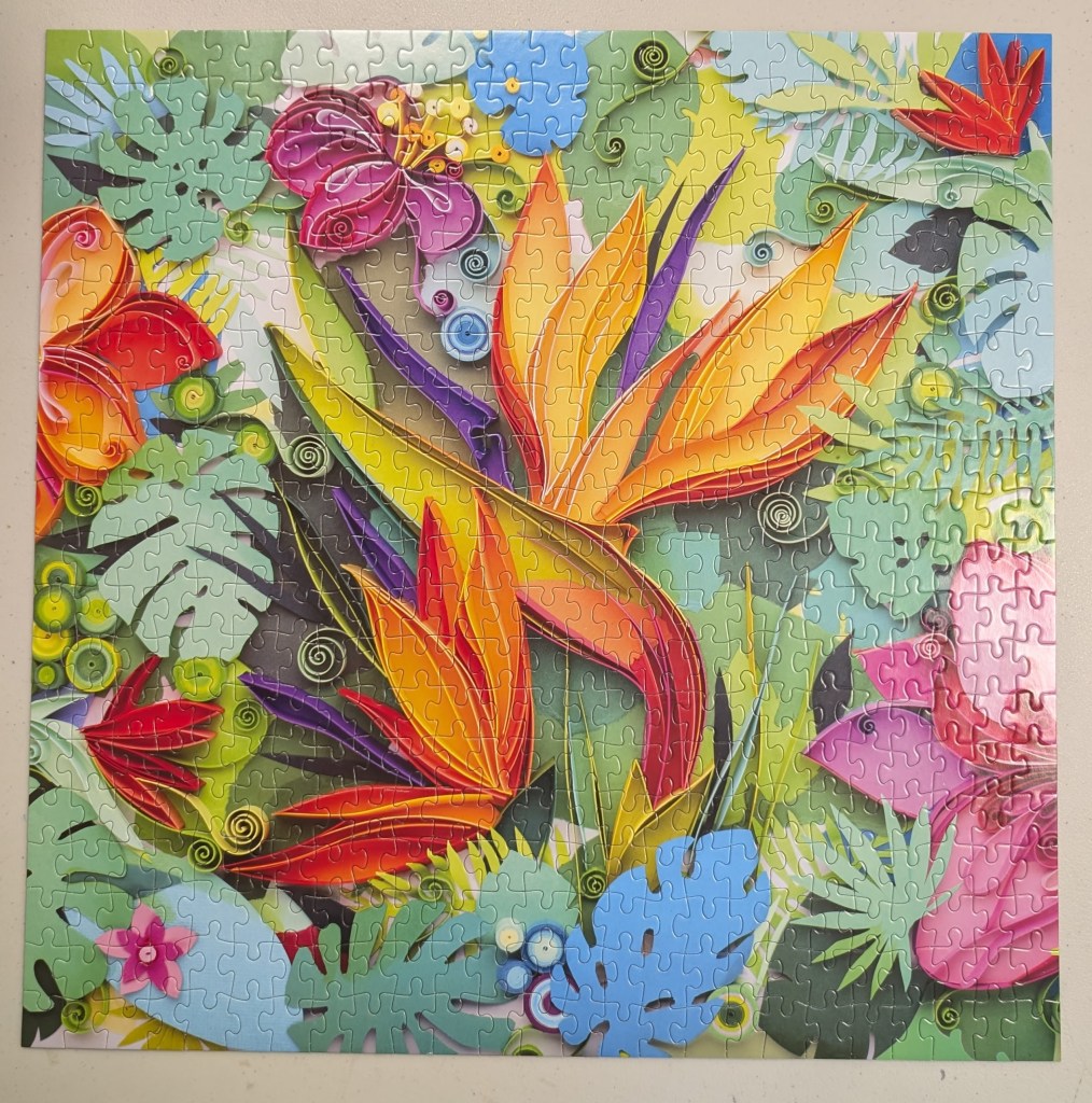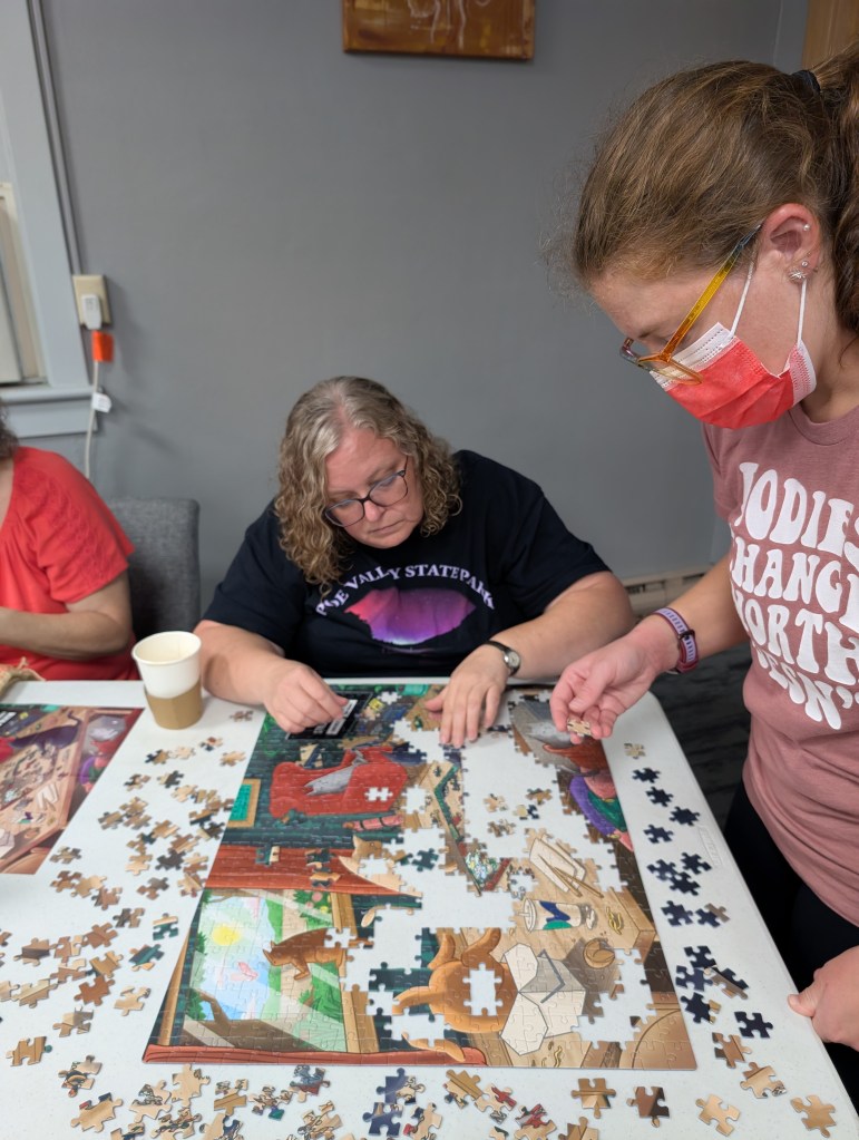 My friend Suzanne and I decided to do puzzles during the crafting time. We did two puzzles, and our friend Brianne joined us for the first one before settling down to color. My friend Renee, who lives about 45 minutes away, came with me as well and she was doing some crochet.