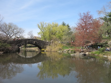 Our main event of the day was the Southern Welcome Tour in Central Park.  The bus dropped us off at Bryant Park, so we decided to walk the 19 blocks to where the tour would begin.  We had two very friendly and knowledgeable tour guides who took us around to several important park landmarks between 59th and 65th Streets.  They also gave a lot of history on how the park came to be.  The picture at the top of this post is of the Gapstow Bridge, which was part of our tour.  It is popular for weddings, and we did in fact see a bridal couple getting pictures taken there.