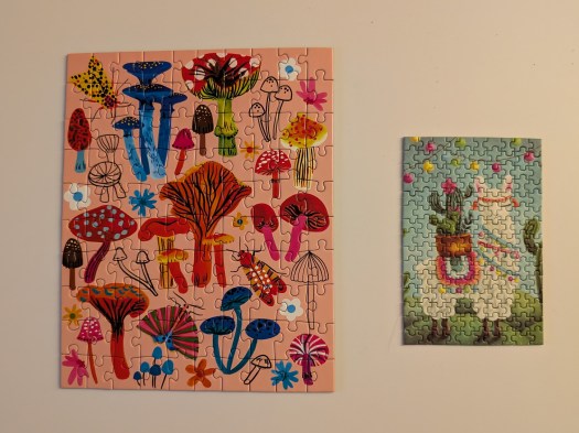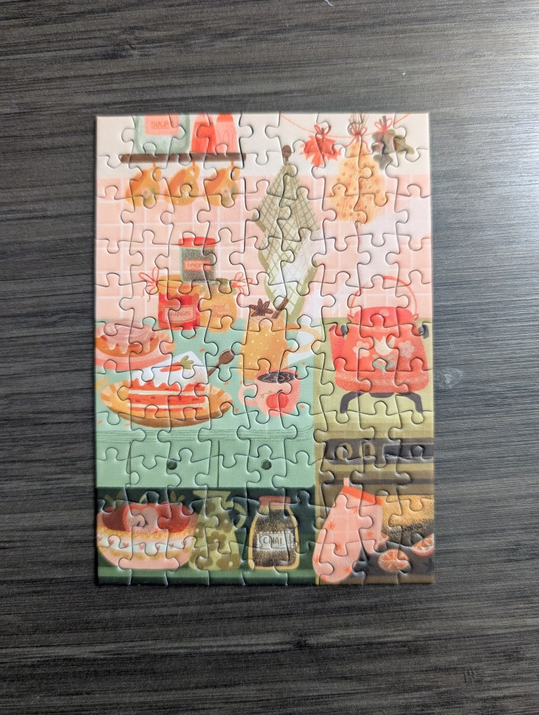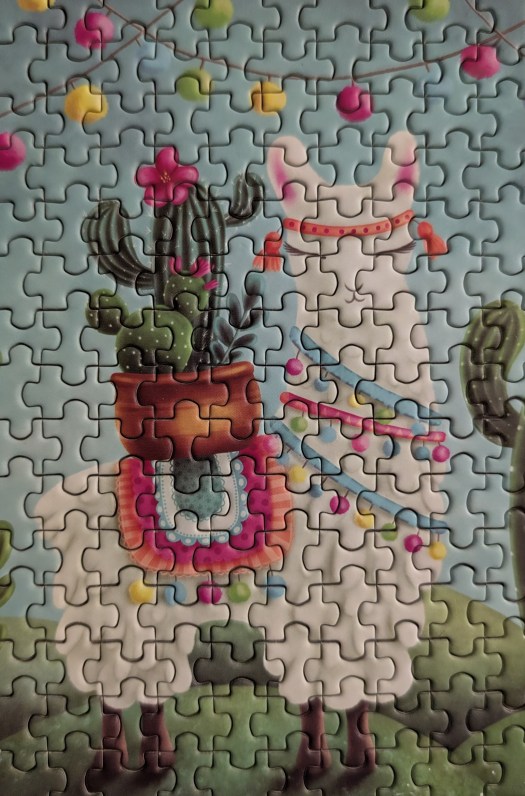 For anyone who isn’t familiar with puzzle chess, here’s how it works. You pick a small puzzle (we used 100 pieces) and you build the border together and lay out all the other pieces. Then you start a chess clock, which you can get on your phone, and take turns putting one piece into the puzzle. Once you have placed your piece, you tap your clock to end your turn and start the other person’s time. Whoever has the most time left when the puzzle is done is the winner!