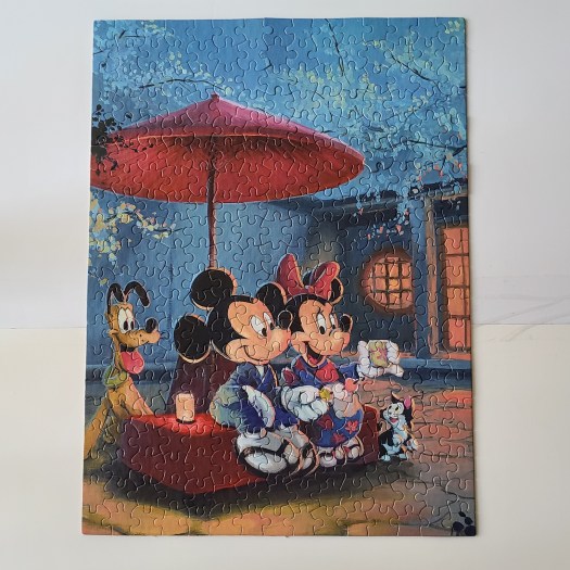 I started with this 300-piece image of Mickey and Minnie with Pluto outside under an umbrella. It came together pretty quickly.