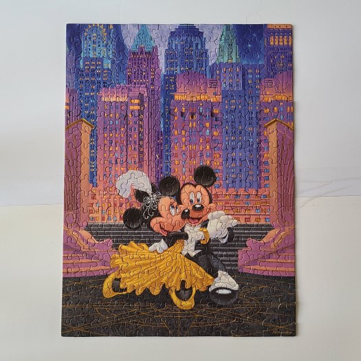 Next I did this 300-piece puzzle of Mickey and Minnie dancing in front of a nighttime skyline. I loved the background on this one.