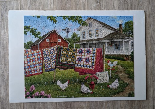 While these are very cute puzzles, I don’t think I would want to do them again, so the set is going in the stack for the next puzzle swap I am able to attend.