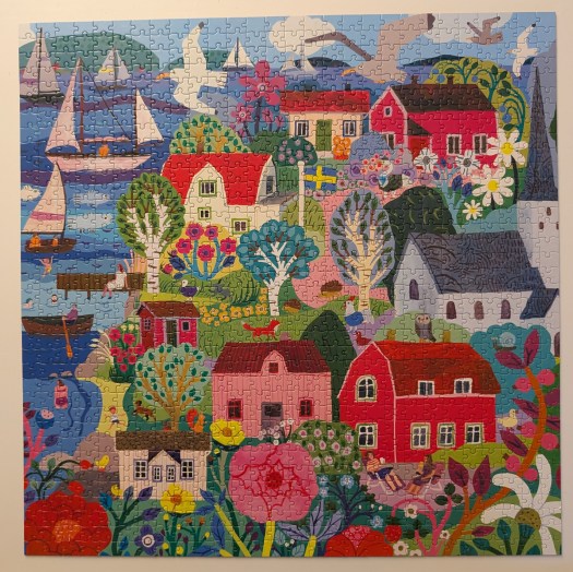 My second puzzle was Copenhagen from eeBoo. I always enjoy their puzzles. I like the size and shape of their pieces, and I don’t mind that they are glossy – I have never had a problem with that.
