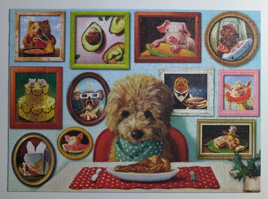 I have done a couple other puzzles from this artist and really enjoy her style. Cobble Hill is a really good quality brand that does random-cut puzzles. I tend to do more ribbon or grid cut puzzles, but the random cut didn’t bother me with this one because it was such a great image.