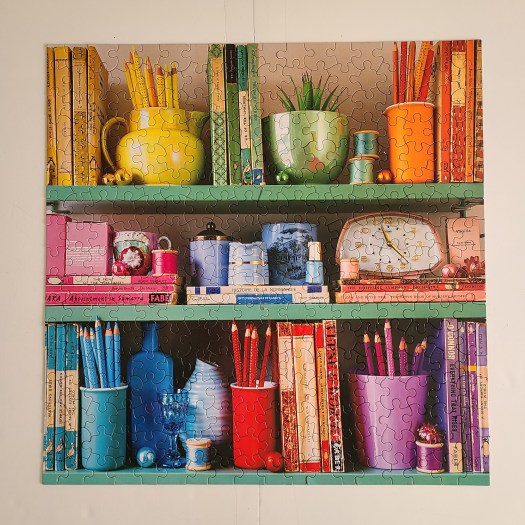 The last puzzle I completed from this month’s box was Beach Trash, also from Fred. It was 500 pieces and the artist was Emily Blincoe, just like the Sugar Spectrum puzzle I did earlier. It was one I had seen online before but never quite liked enough to buy it outright, so I was glad to get the chance to do it this way. It was a good puzzle; the difficulty was medium low so I never got stuck or frustrated.