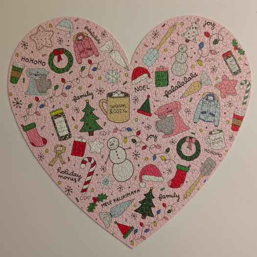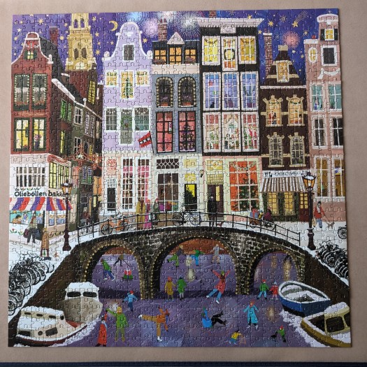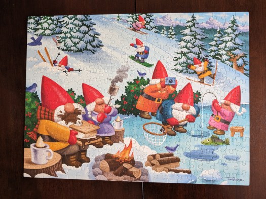 Sometimes they have large areas of one color, like a green meadow or a field of crops, and for those I tend to prefer a smaller piece count so they won’t be super hard. Even though this image has a lot of snow, there is enough going on all over the puzzle that it was not too hard to do as a 1000-piece.